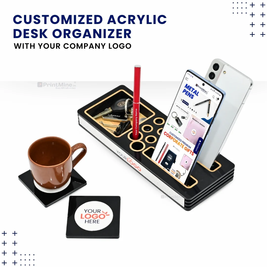 Premium Desk Organizer (with Metal Pen & 2 Tea Coasters) | Best for Corporate Gifting | PrintMine.in